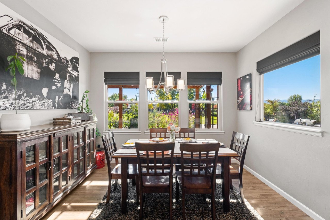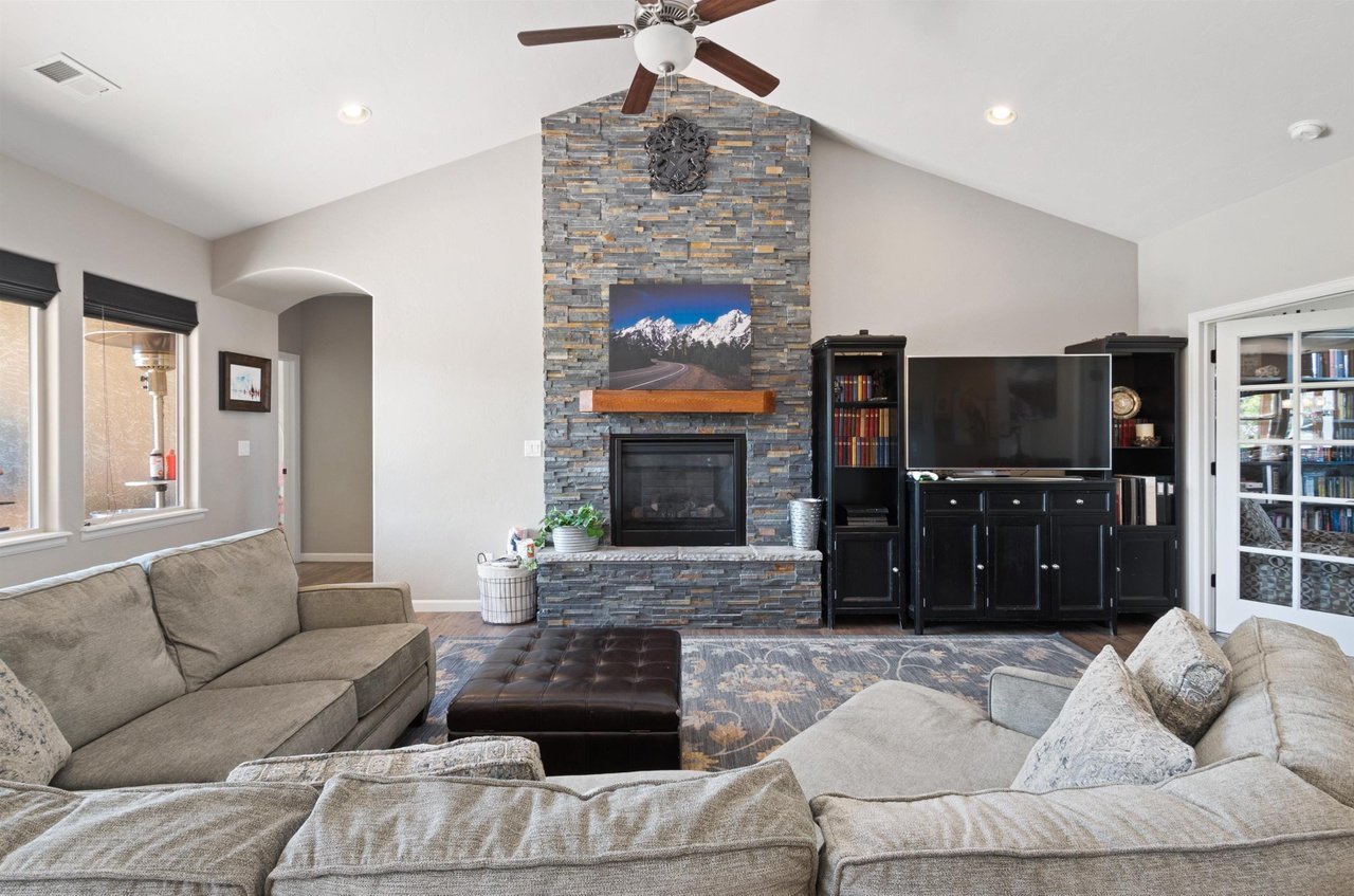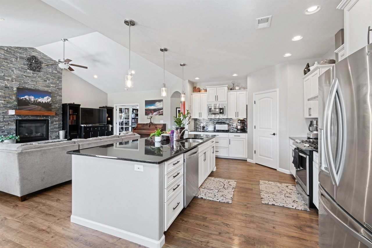 This beautiful home situated on just over an acre conveniently located in the North area. Bring all the toys and your projects with a heated and insulated 48’ by 28’ shop that has a car lift, airlines in the finished walls and a TV. The side of the shop is a covered space for RV parking on the side with hookups. The home has a side entry 4 car garage that features additional space for a workout area/ workshop, your choice!! The home features vaulted ceilings and a split floorplan design with 5 bedrooms, (or 3 with an office and a bonus room), an open kitchen with a large granite island and a dining room off to the side. The back porch is partially covered and then extends out to a large area making it perfect for entertaining. The backyard is a park like setting with fruit trees and bushes for the perimeter, garden beds, a shed, a walkway, a playground area and plenty of space! Call Today!