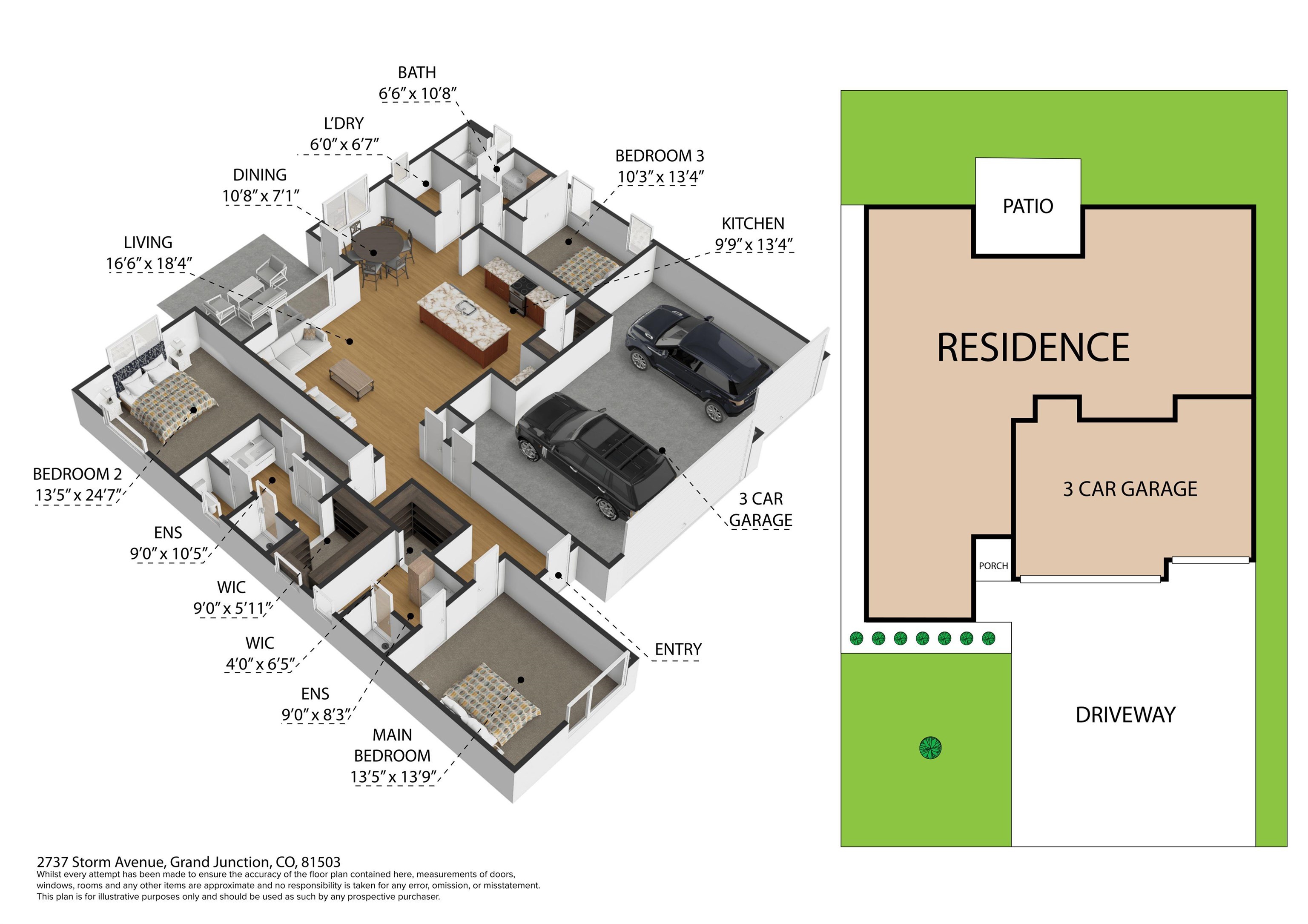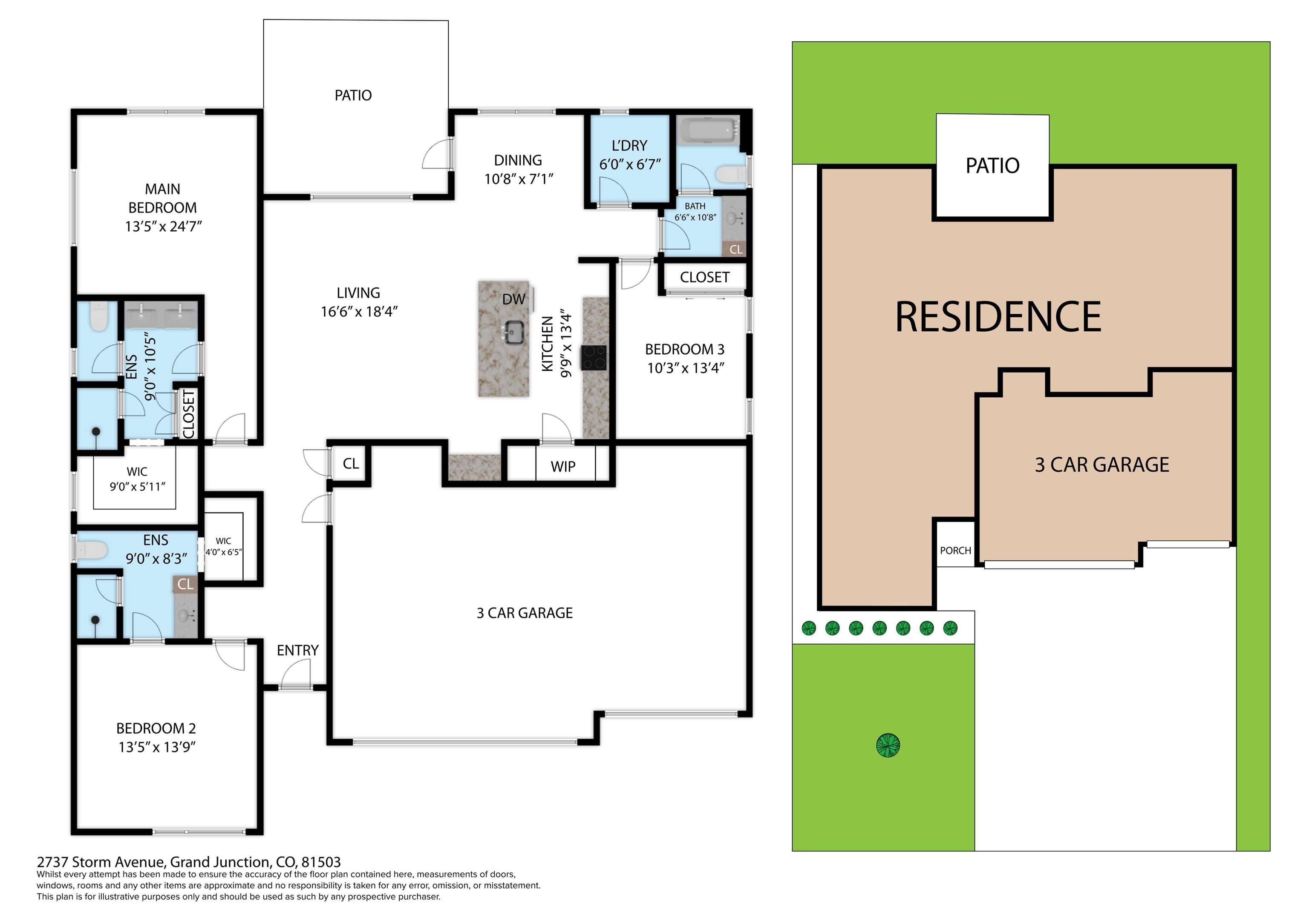 Starting Rate as low as 3.0% available. Call for details. Modern design meets Colorado living in this thoughtfully crafted patio home in Orchard Mesa. Featuring clean lines and a bold look, this home provides 1,792 square feet, 3 bedrooms, 3 bathrooms, and a 3-car garage - meeting your storage needs and room for a shop. Built for functionality this smart layout has a small footprint but is very open. Inside there are 2 primary suites with attached full bath and walk-in closets, as well as a third bedroom. The high 11' ceiling in the foyer & hall, opens to a large cozy common area with a living room that features a tray ceiling. Simple living combined with interior details brings comfort and practicality right to you. The covered patio invites you to enjoy quiet mornings and beautiful evenings outdoors. Low-maintenance living means more time to embrace Colorado's lifestyle--300+ days of sunshine, mild winters, and endless opportunities for recreation. Spend your days golfing, wine tasting, hiking, or enjoying local cultural events--all just minutes away. No yard work, no hassle, just easy living in a modern home designed for efficiency and style. To make this opportunity even more attractive, buyers may choose one of three valuable incentives: 1. A 3-2-1 Interest Rate Buydown - reduce your monthly payments with a lower starting rate. 2. Backyard Landscaping Package - create your own outdoor oasis. 3. Custom Window Covering Package -style your home to fit your taste from day one. This isn't just a house--it's the lifestyle you've been waiting for.