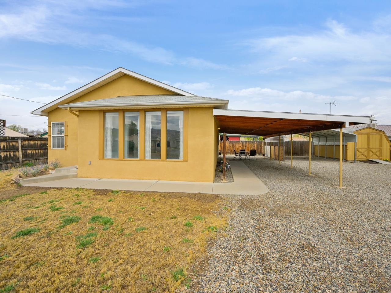 Welcome to one of Fruita's best-kept secrets! If you've been on the hunt for a home with personality, charm, and some updates - this is the one! Sitting just minutes from all the small-town goodness Fruita has to offer, you'll never have a shortage of things to do. Whether it's seasonal festivals and markets, the local serene parks, or the uniquely Fruita businesses, you'll love it all! From the moment you pull up, the spacious front yard and extra-long driveway will have you dreaming up gardens, gatherings, or outdoor activities. Step inside and be greeted by fresh paint, new flooring, and tall vaulted ceilings that make the living space feel open, airy, and full of light. The kitchen is where things get fun - it's got quirky-cool laminate countertops, lovely fixtures, and just enough retro flair to spark some serious joy. Bedrooms are perfectly placed for ease and flow, with a full bath that's got charm for days (and no, you won't find that cookie-cutter vibe here!). Out back? You're going to love this. A huge covered patio means year-round entertaining is a breeze, and the backyard has space to spare - hello, potential ADU! There's also a carport, a storage shed, and plenty of room to stretch out and make it your own. This home is cozy, creative, and totally lovable - just like Fruita itself. Homes with this kind of heart don't come around often. Come see it today and fall in love for yourself!