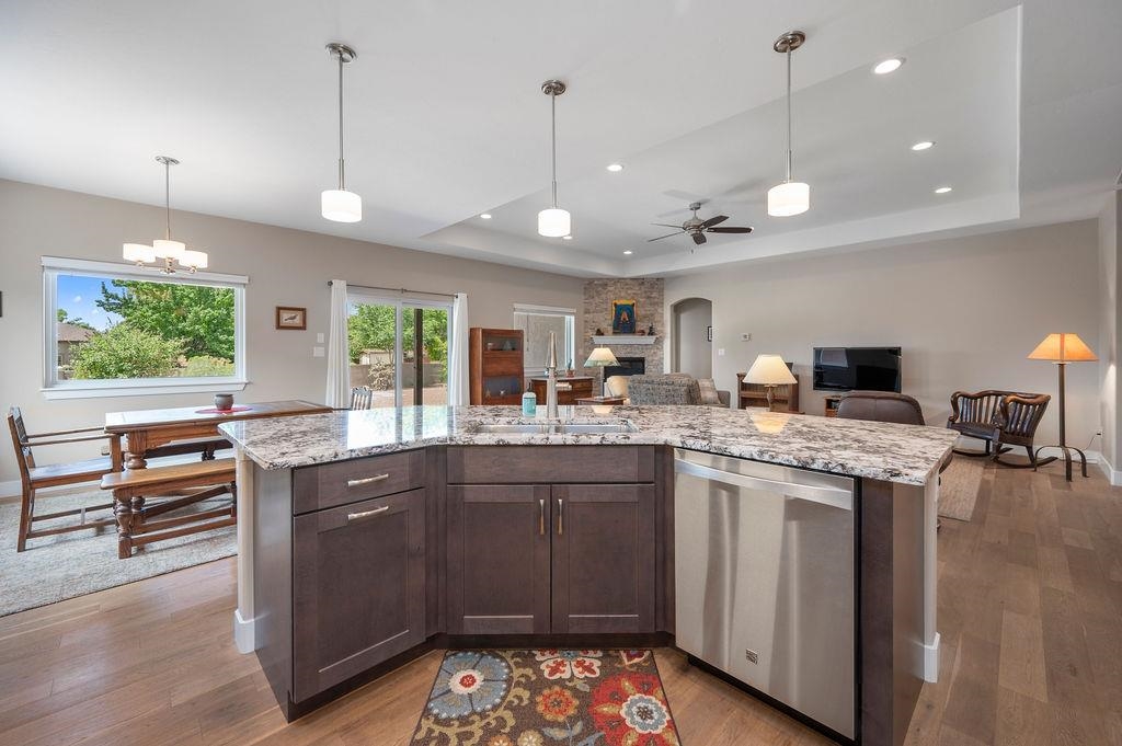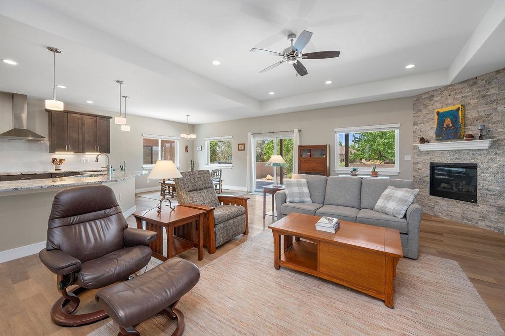 Welcome to this beautifully maintained 3-bedroom, 2-bathroom home in the highly sought-after Summer Hill Subdivision! Built in 2016 and offering 1,846 square feet of comfortable living space, this home features a desirable split floor plan and a warm, inviting gas log fireplace in the living room--perfect for cozy evenings. The spacious kitchen, with an induction range and open layout make entertaining a breeze, while the large covered patio provides the perfect space to relax and enjoy the serene views--backing to open space for added privacy and tranquility. The xeriscaped and fully fenced backyard is both low-maintenance and ideal for outdoor living. A 2-car garage, and a prime location close to parks, trails, and amenities make this home the perfect combination of comfort, style, and convenience. Don't miss your chance to live in one of the area's most desirable neighborhoods!